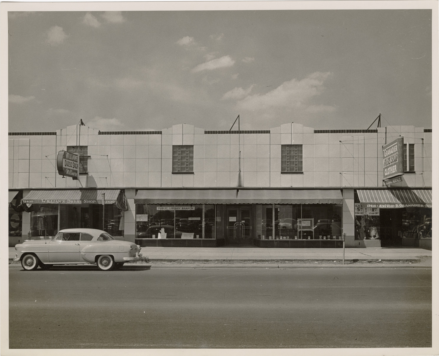 Favorite this☆ Hubbard Branch Library Description: View of the Hubbard Branch Library, Detroit Public Library, in a storefront. Car is parked in street. Stamped on back: "Photograph by Harold Raymond." Handwritten on back: "Bela Hubbard Public Library. 13422 W. McNichols." Details Resource ID: bh020089 Creator: Raymond, Harold Subject: Detroit Public Library. Hubbard Branch Library buildings--Michigan--Detroit Branch libraries--Michigan--Detroit Public libraries--Michigan--Detroit Storefronts--Michigan--Detroit Automobiles--Michigan--Detroit Detroit Housing Commission--Archives Photographic prints Date Issued: Unknown year Format: 1 photographic print ; 8 x 10 in. Member of: Burton Historical Collection Filing Location: MS/Detroit Archives. Housing Commission. Public libraries. 60:14 Rights: Physical rights are retained by DPL. Copyright is retained in accordance with U.S. copyright laws.