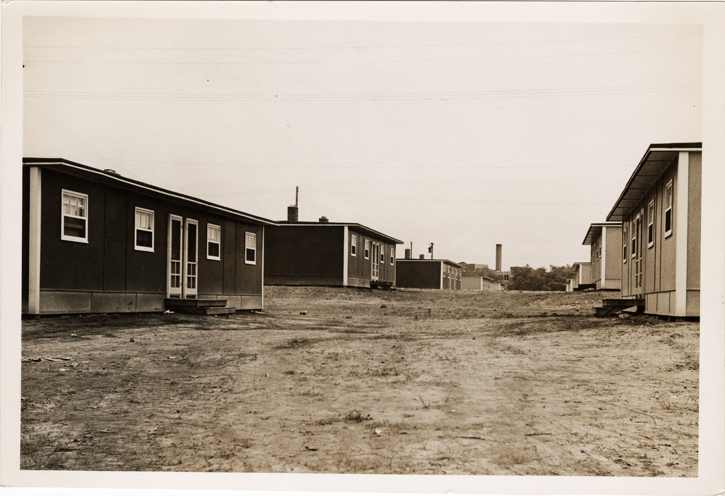 Favorite this☆ Public housing at S. Dix and Mellon Road Description: View of temporary wartime housing located at S. Dix and Mellon Rd. Handwritten on back: "Public housing. Temp. war. S. Dix & Mellon Rd. Raymond, 1943." Details Resource ID: bh020115 Creator: Raymond, Harold Subject: Public housing--Michigan--Detroit Temporary housing--Michigan--Detroit Dwellings--Michigan--Detroit Detroit Housing Commission--Archives Photographic prints Date Issued: 1943 Format: 1 photographic print ; 6.75 x 10 in. Member of: Burton Historical Collection Filing Location: MS/Detroit Archives. Housing Commission. Miscellaneous neighborhoods. 60:15 Rights: Physical rights are retained by DPL. Copyright is retained in accordance with U.S. copyright laws.