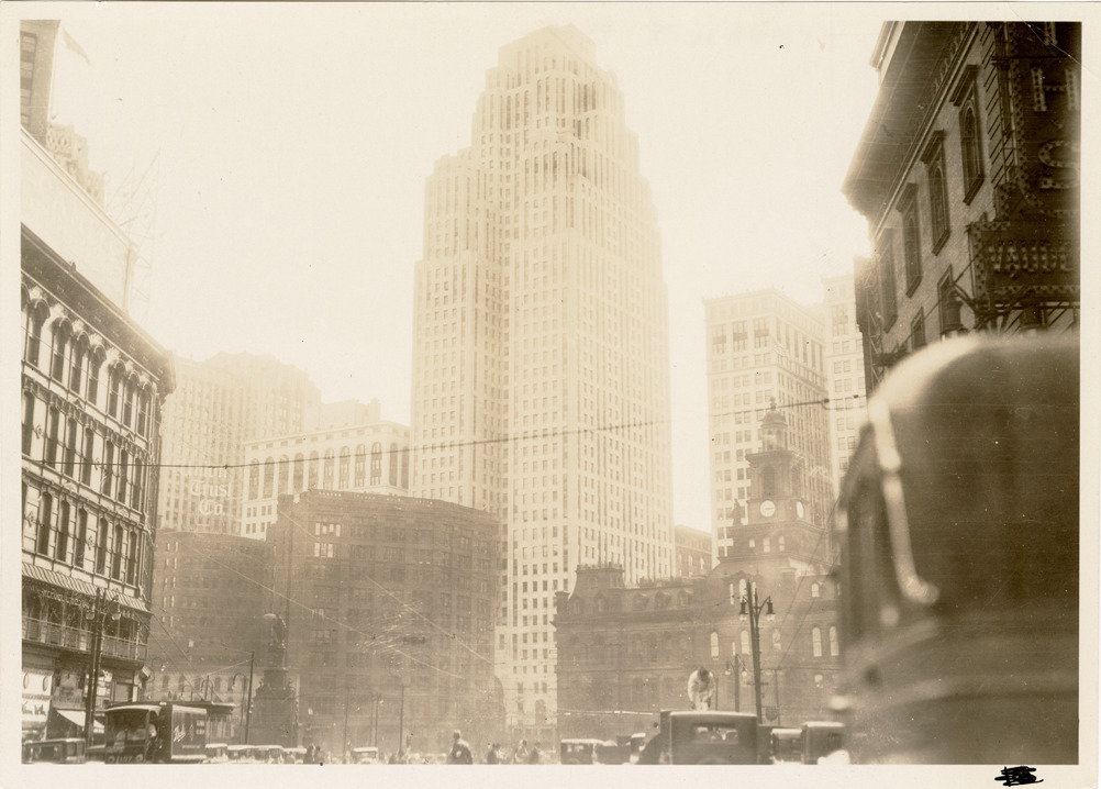 Favorite this☆ Penobscot Building Description: View of the Penobscot Building, with Campus Martius in foreground. Handwritten on back: "9-19-28, Penobscot Bldg." Details Resource ID: bh020119 Subject: Office buildings--Michigan--Detroit Skyscrapers--Michigan--Detroit Smith, Hinchman and Grylls Detroit Housing Commission--Archives Photographic prints Date Issued: 1928-09-19 Format: 1 photographic print ; 4.75 x 6.75 in. Member of: Burton Historical Collection Filing Location: MS/Detroit Archives. Housing Commission. Civic Center. 60:21 Rights: Physical rights are retained by DPL. Copyright is retained in accordance with U.S. copyright laws.