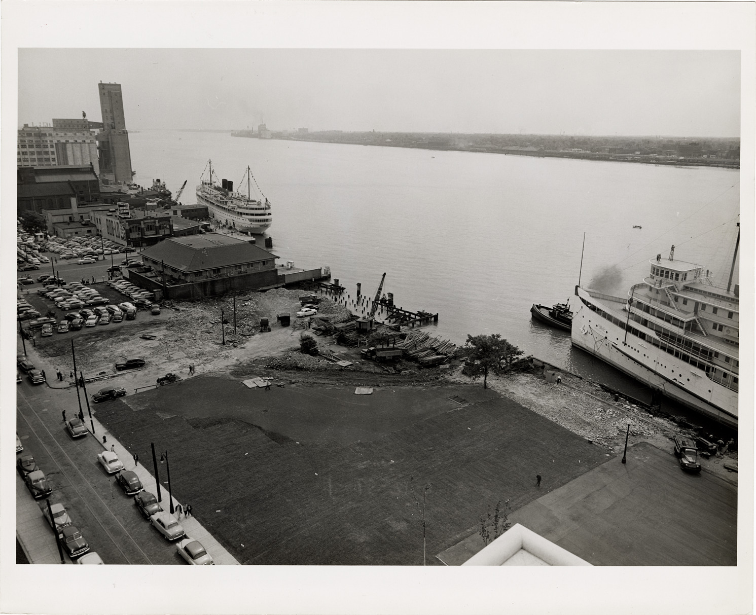 Favorite this☆ Construction site on Detroit riverfront Description: View of a construction site on the Detroit riverfront. Passenger ferries docked at shore; Bob-Lo parking lot on left. Details Resource ID: bh020142 Creator: Taylor Subject: Waterfronts--Michigan--Detroit Building sites--Michigan--Detroit Ferries--Michigan--Detroit Detroit River (Mich. and Ont.) Detroit Housing Commission--Archives Photographic prints Date Issued: Unknown year Format: 1 photographic print ; 8 x 10 in. Member of: Burton Historical Collection Filing Location: MS/Detroit Archives. Housing Commission. Civic Center. 60:19 Rights: Physical rights are retained by DPL. Copyright is retained in accordance with U.S. copyright laws.