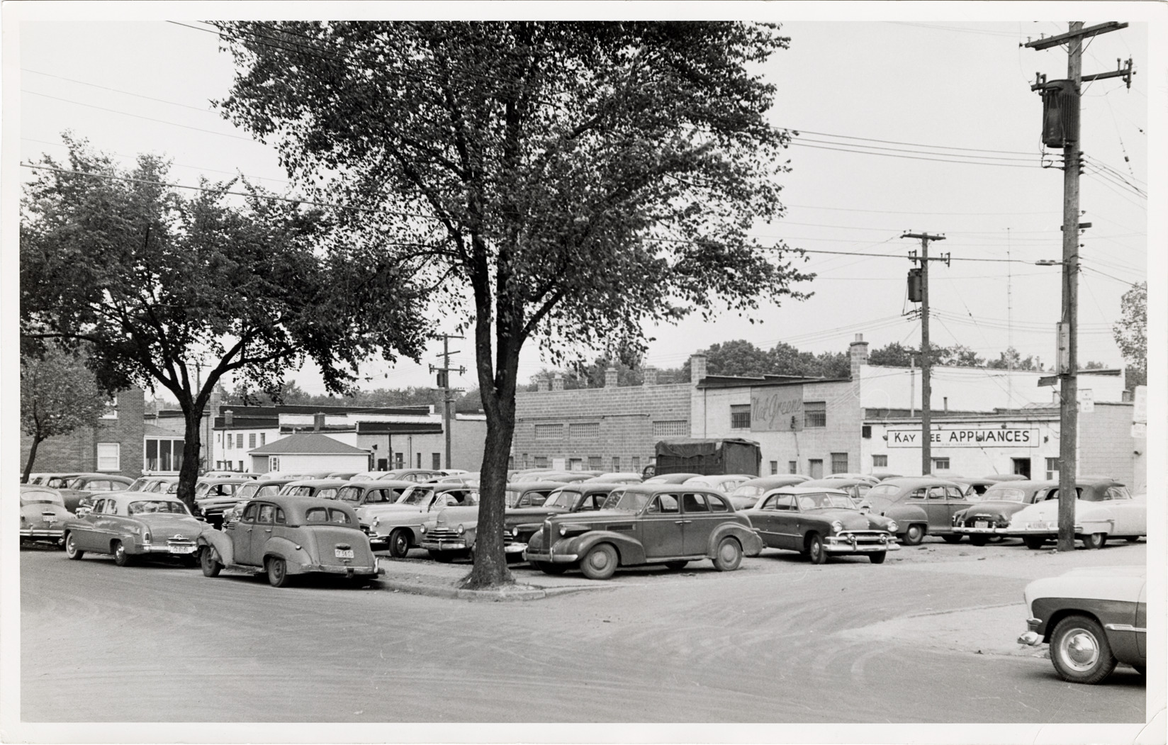 Favorite this☆ Parking lot on Stoepel, north of Seven Mile Road Description: View of cars in parking lot behind commercial buildings on Stoepel, north of 7 Mile Rd. Stamped on back: "Harold Raymond." Handwritten on back: "East side of Stoepel north of Seven Mile. View looking northeast." Details Resource ID: bh020182 Creator: Raymond, Harold Subject: Parking lots--Michigan--Detroit Automobiles--Michigan--Detroit Streets--Michigan--Detroit Detroit Housing Commission--Archives Photographic prints Date Issued: Unknown year Format: 1 photographic print ; 7 x 11 in. Member of: Burton Historical Collection Filing Location: MS/Detroit Archives. Housing Commission. Parking. 60:17 Rights: Physical rights are retained by DPL. Copyright is retained in accordance with U.S. copyright laws.