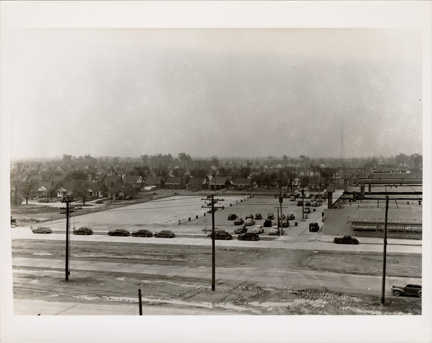 Favorite this☆ Parking lot at Harper and Van Dyke Description: Distant view of a parking lot located at Harper and Van Dyke. Cunningham's Drug Store visible in foreground. Stamped on back: "Photograph by Harold Raymond. No. BQ18." Handwritten on back: "5-11-48. 3 PM." Details Resource ID: bh020193 Creator: Raymond, Harold Subject: Parking lots--Michigan--Detroit Automobiles--Michigan--Detroit Detroit Housing Commission--Archives Photographic prints Date Issued: 1948-05-11 Format: 1 photographic print ; 8 x 10 in. Member of: Burton Historical Collection Filing Location: MS/Detroit Archives. Housing Commission. Parking. 60:17 Rights: Physical rights are retained by DPL. Copyright is retained in accordance with U.S. copyright laws.