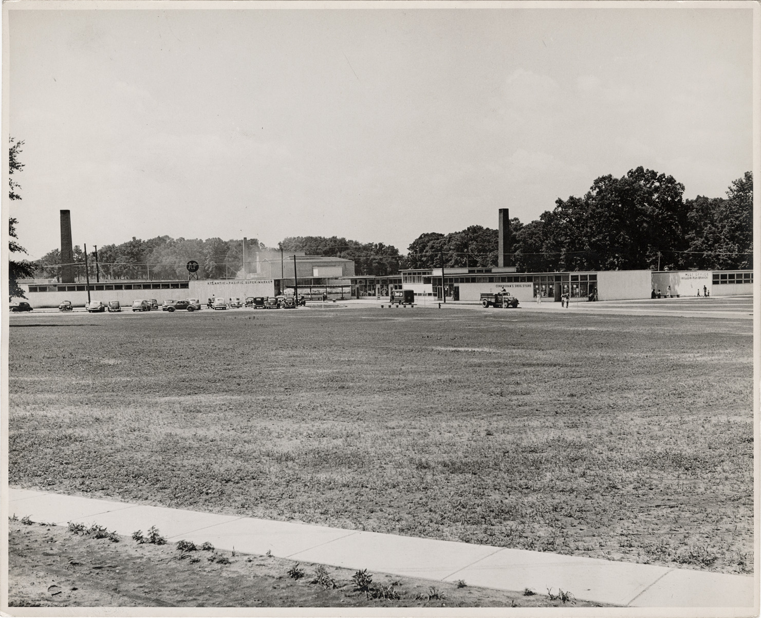 Favorite this☆ Shopping center at Willow Run Description: Distant view of the shopping center at Willow Run. Businesses include the A&P supermarket, Cunningham's Drug Store and a U.S. Post Office. Handwritten on back: "Shopping center, Willow Run. Raymond, 6-44." Details Resource ID: bh020198 Creator: Raymond, Harold Subject: Shopping centers--Michigan--Willow Run Willow Run (Manufacturing plant) Supermarkets--Michigan--Willow Run Drugstores--Michigan--Willow Run Post office buildings--Michigan--Willow Run Detroit Housing Commission--Archives Photographic prints Date Issued: 1944-06 Format: 1 photographic print ; 8 x 10 in. Member of: Burton Historical Collection Filing Location: MS/Detroit Archives. Housing Commission. Parking. 60:17 Rights: Physical rights are retained by DPL. Copyright is retained in accordance with U.S. copyright laws.