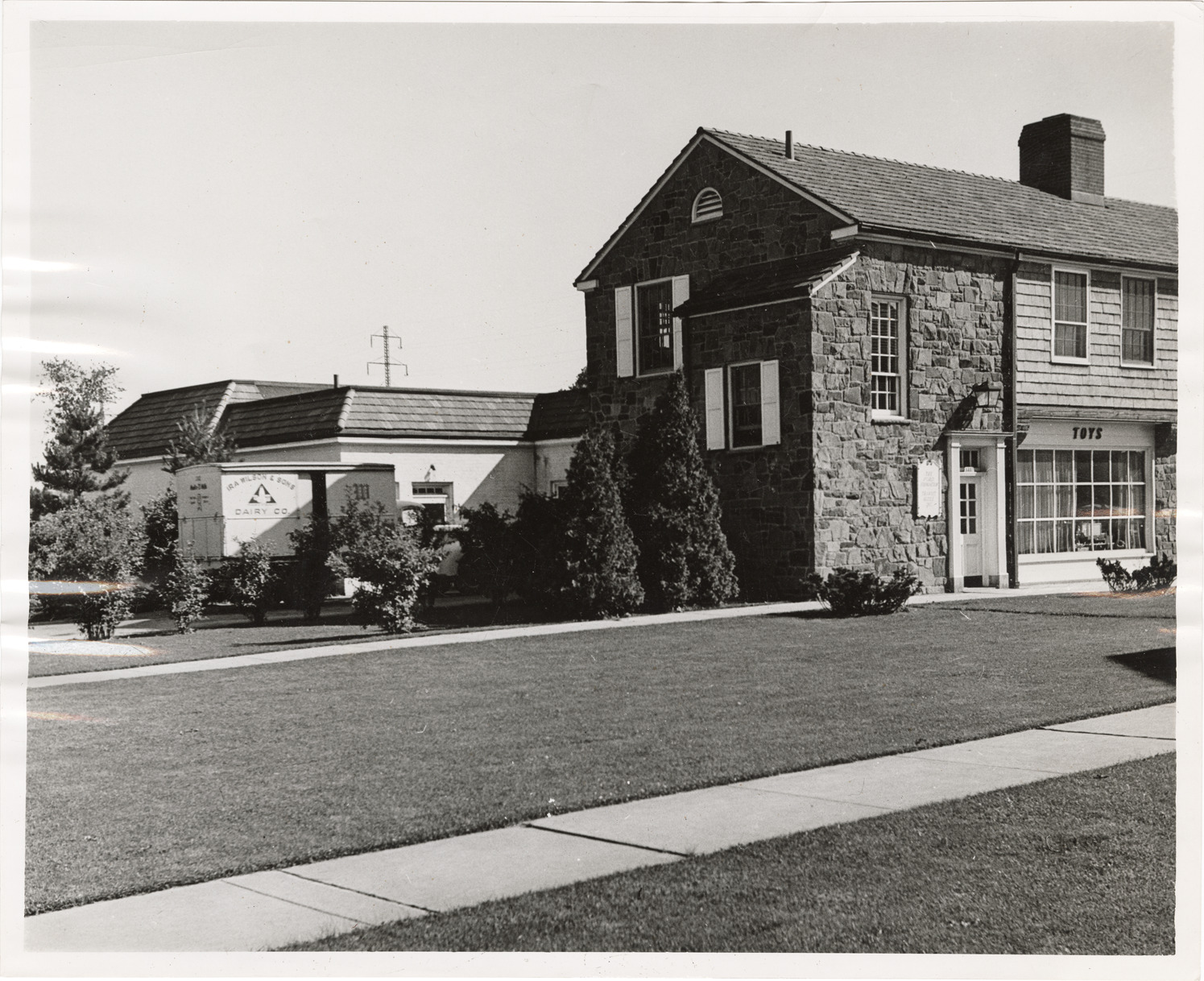 View of stores at the Ford Foundation Springwells Park neighborhood shopping center in Dearborn, Michigan.