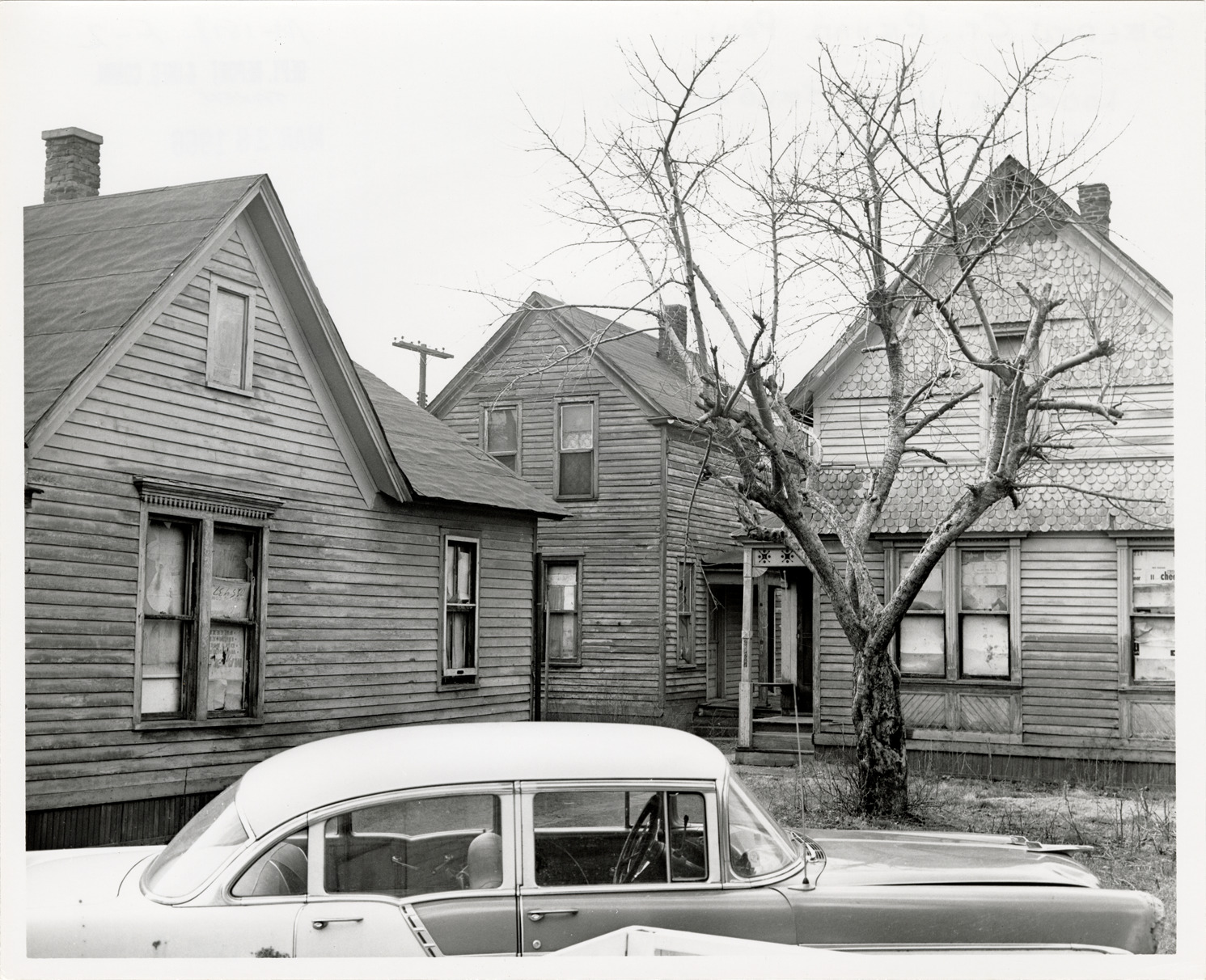 Favorite this☆ Houses on Selden Court Description: Close-up view of three wooden-frame houses located on Selden Ct. Automobile in foreground. Stamped on back: "Taken Mar 28, 1966." Handwritten on back: "Selden Ct. Rehab. Proj. Looking into Selden Ct. to be removed." Details Resource ID: bh020282 Subject: Wooden-frame houses--Michigan--Detroit Detroit Housing Commission--Archives Photographic prints Date Issued: 1966-03-28 Format: 1 photographic print ; 8 x 10 in. Member of: Burton Historical Collection Filing Location: MS/Detroit Archives. Housing Commission. Selden Court Rehabilitation Project. 62:31 Rights: Physical rights are retained by DPL. Copyright is retained in accordance with U.S. copyright laws.