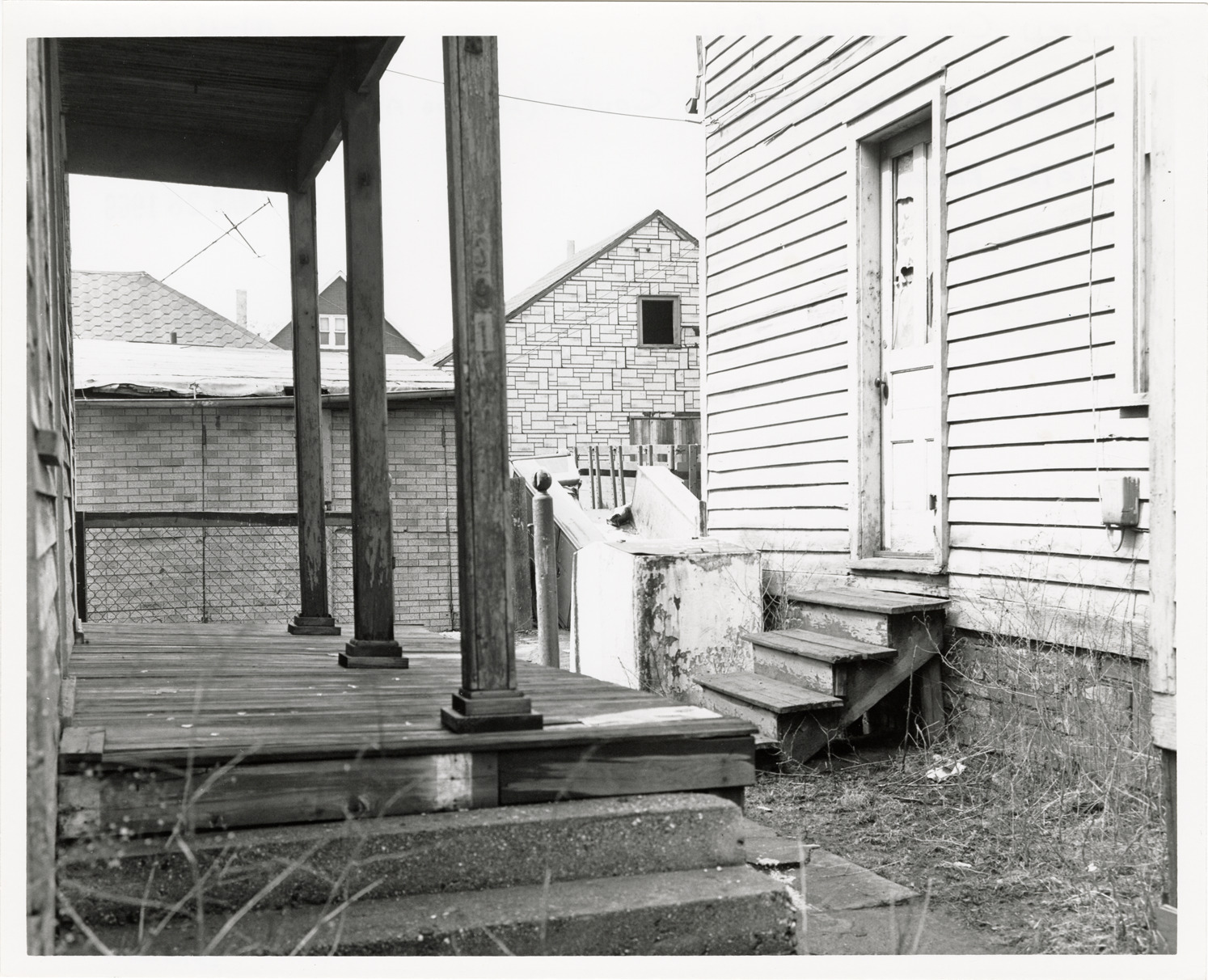 Favorite this☆ Houses on Selden Court Description: Close-up view of wooden-frame houses located on Selden Ct. Stamped on back: "Taken Mar 28, 1966." Handwritten on back: "Selden Ct. Rehab. Proj. Interior of Selden Court (looking at back of 12th St.) To be removed." Details Resource ID: bh020290 Subject: Wooden-frame houses--Michigan--Detroit Detroit Housing Commission--Archives Photographic prints Date Issued: 1966-03-28 Format: 1 photographic print ; 8 x 10 in. Member of: Burton Historical Collection Filing Location: MS/Detroit Archives. Housing Commission. Selden Court Rehabilitation Project. 62:31 Rights: Physical rights are retained by DPL. Copyright is retained in accordance with U.S. copyright laws.