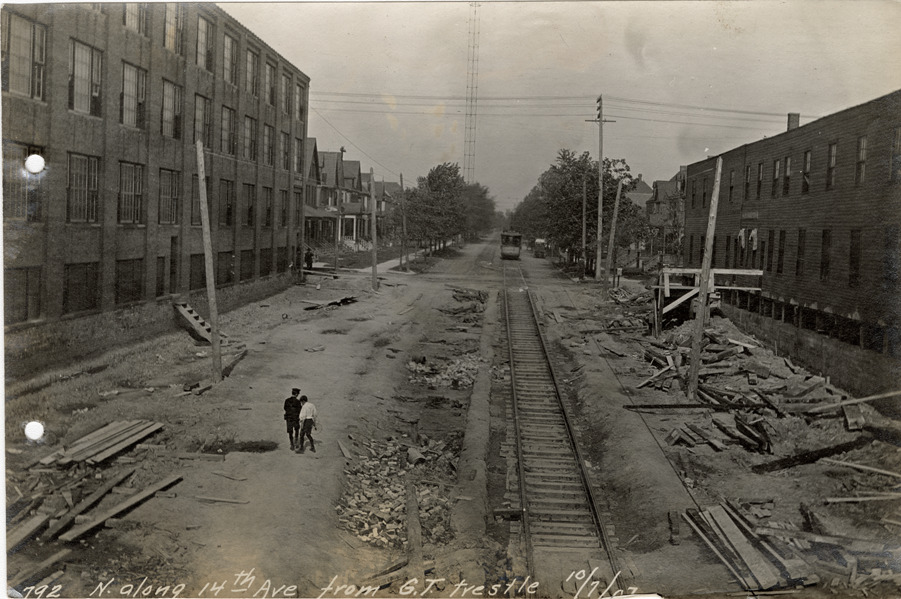 Railroad tracks on 14th St., Michigan Central Railroad construction