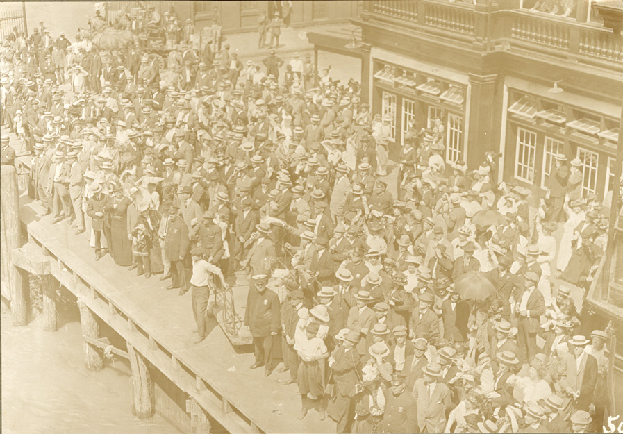 Crowd waiting on dock, Detroit Board of Commerce, Eleventh Annual Cruise