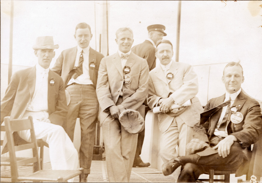Men posing on ferry, Detroit Board of Commerce, Eleventh Annual Cruise