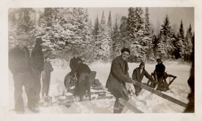 Men working with small engines in snow, Company 1620, Civilian Conservation Corps, Camp Escanaba