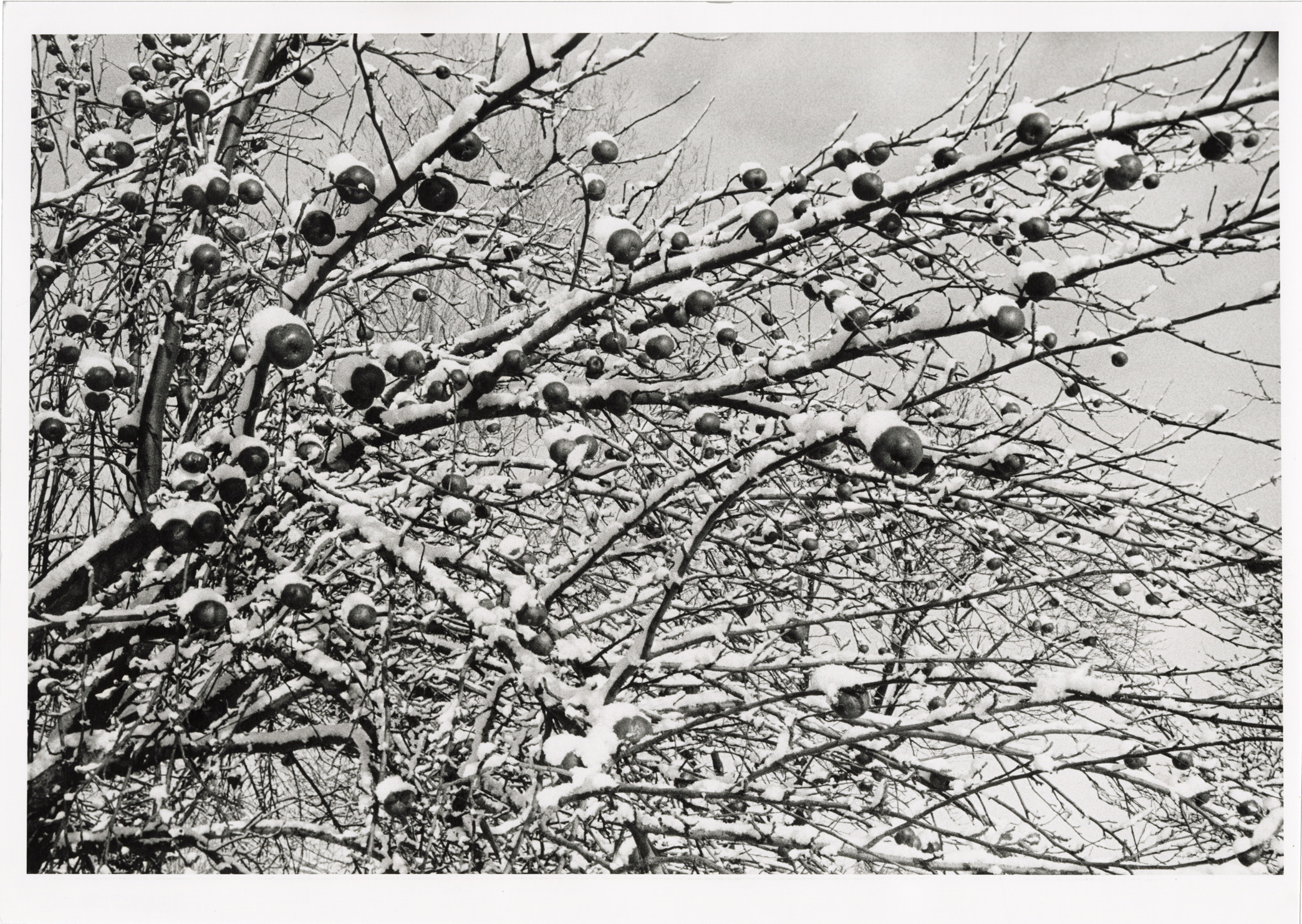 Favorite this☆ Snow-covered apple tree Description: View of a snow-covered apple tree. Label on back: "Michigan Thumb area--Winter--Frozen apples." Details Resource ID: bh020758 Creator: Donahue, Steven W. Subject: Apples--Michigan--Thumb District Snow--Michigan--Thumb District Photographers--Michigan Photographic prints Date Issued: Unknown year Format: 1 photographic print ; 10 x 14 in. Member of: Burton Historical Collection Steven W. Donahue Collection Filing Location: MS/Donahue, Steven W., Box 3 Rights: Physical rights are retained by DPL. Copyright is retained in accordance with U.S. copyright laws. Copyright transferred to Detroit Public Library, 2017-09-12.