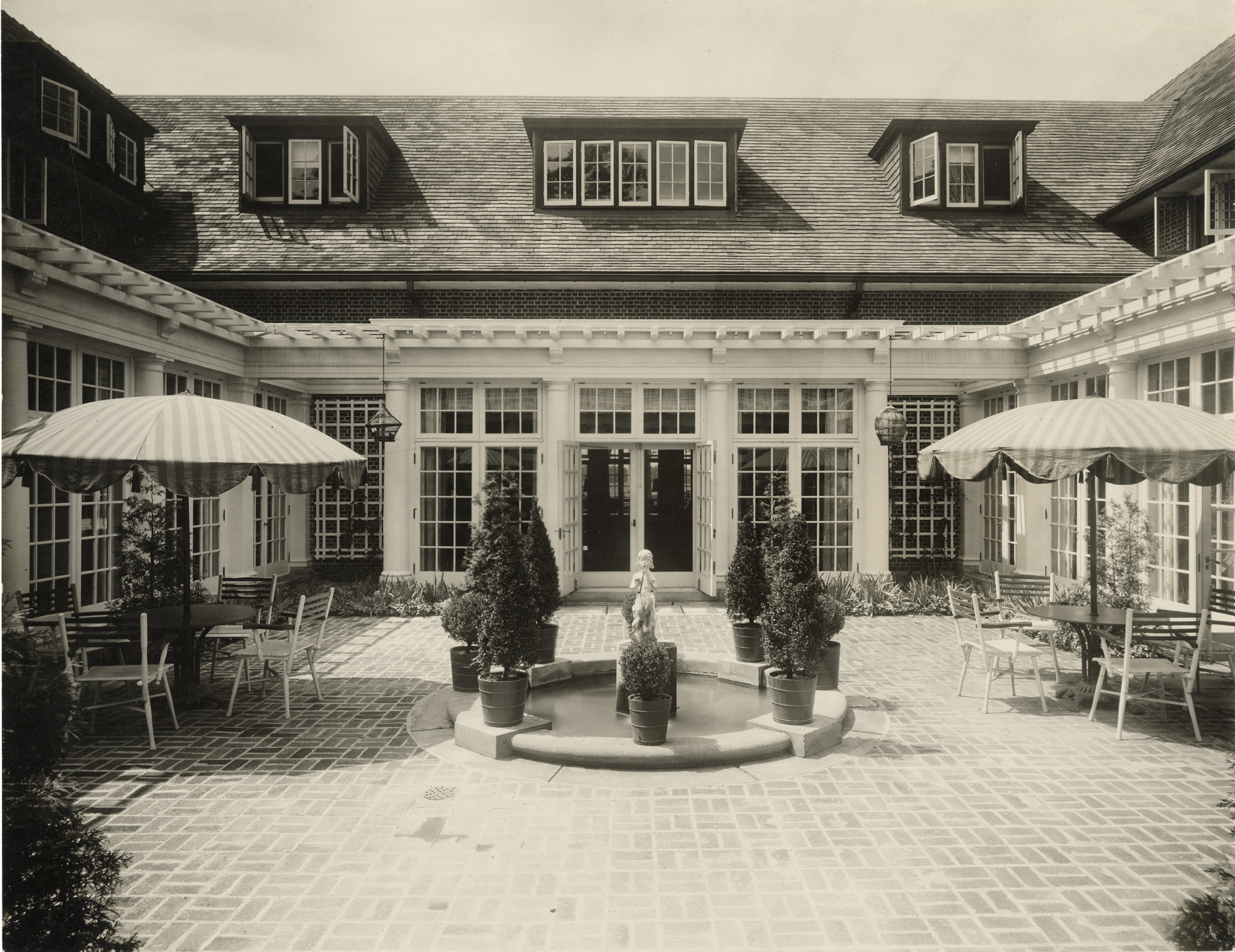 Favorite this☆ Courtyard, Detroit Golf Club Description: View of the courtyard of the clubhouse for the Detroit Golf Club, showing fountain and patio tables with umbrellas and chairs. Stamped on back: "Geo. W. Hance." Handwritten on back: "Court, Det. Golf Club." Details Resource ID: bh020801 Creator: Hance, George W. Subject: Clubhouses--Michigan--Detroit Athletic clubs--Michigan--Detroit Courtyards--Michigan--Detroit Fountains--Michigan--Detroit Patios--Michigan--Detroit Umbrellas--Michigan--Detroit Photographers--Michigan--Detroit Photographic prints Date Issued: Unknown year Format: 1 photographic print ; 10.5 x 13.5 in. Member of: Burton Historical Collection Filing Location: LD/Organizations-Detroit Golf Club Rights: Physical rights are retained by DPL. Copyright is retained in accordance with U.S. copyright laws.