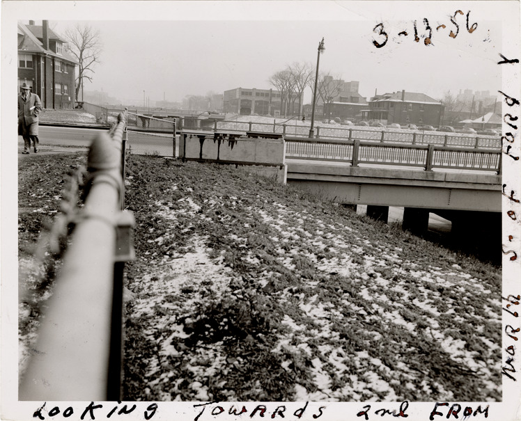 Favorite this☆ Second Avenue and I-94 Ford Expressway Description: View of Second Ave., I-94 Ford Expressway and embankment. Man on left; buildings and houses in background. Handwritten on on front: "Looking towards 2nd from north s. of Ford X. 3-13-56." Details Resource ID: bh020811 Subject: Streets--Michigan--Detroit Express highways--Michigan--Detroit Embankments--Michigan--Detroit Detroit (Mich.). Corporation Counsel. Bureau of Real Estate Photographic prints Date Issued: 1956-03-13 Format: 1 photographic print ; 4 x 5 in. Member of: Burton Historical Collection Filing Location: D/Libraries-DPL-Service Building site Rights: Physical rights are retained by DPL. Copyright is retained in accordance with U.S. copyright laws.