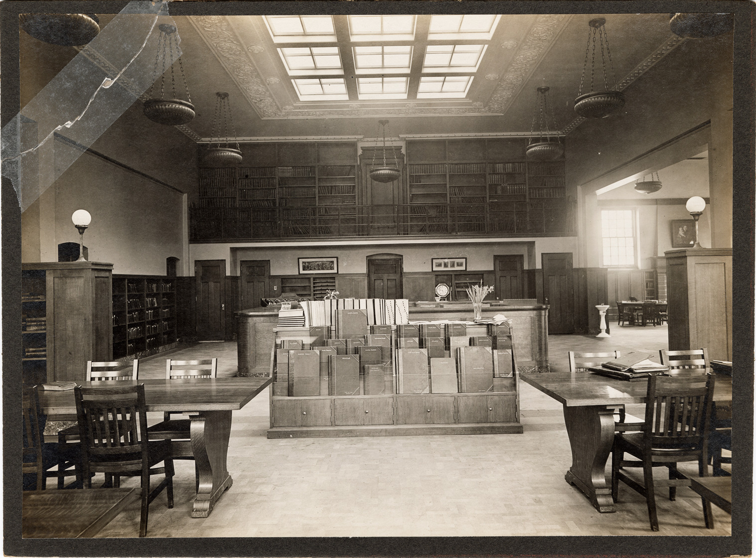 Favorite this☆ Reading Room, Bowen Branch Library Description: View of the Reading Room in Bowen Branch Library, Detroit Public Library. Room is furnished with tables, chairs, magazine racks and bookshelves. Label on back: "Bowen Branch, Reading Room." Details Resource ID: bh020829 Subject: Detroit Public Library. Bowen Branch Reading rooms--Michigan--Detroit Library buildings--Michigan--Detroit Branch libraries--Michigan--Detroit Public libraries--Michigan--Detroit Photographic prints Date Issued: Unknown year Format: 1 photographic print mounted on mat board ; image 7 x 9.5 in. Member of: Burton Historical Collection Filing Location: D/Libraries-DPL-Branches-Bowen Rights: Physical rights are retained by DPL. Copyright is retained in accordance with U.S. copyright laws.