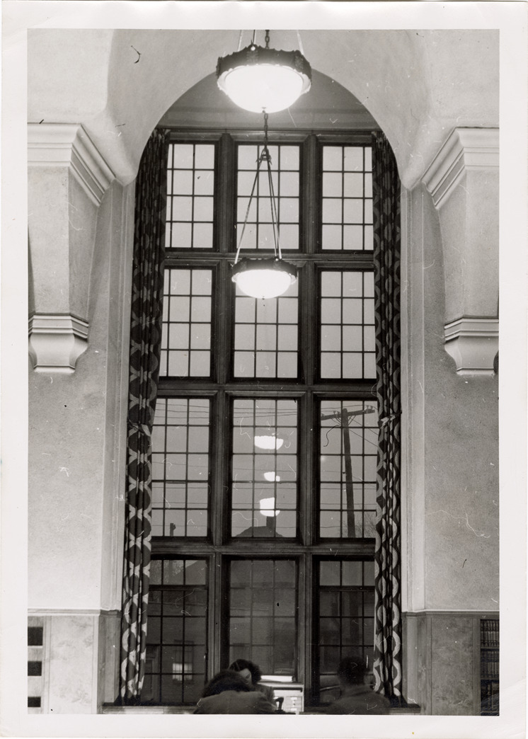 Favorite this☆ Window, Mark Twain Branch Library Description: View of window at the Mark Twain Branch Library, Detroit Public Library. Light fixtures suspended from ceiling. Handwritten on back: "Mark Twain Branch, building interior view, front floor to ceiling windows, 1950." Details Resource ID: bh020838 Subject: Windows--Michigan--Detroit Detroit Public Library. Mark Twain Branch Library buildings--Michigan--Detroit Branch libraries--Michigan--Detroit Public libraries--Michigan--Detroit Photographic prints Date Issued: 1950 Format: 1 photographic print ; 7 x 5 in. Member of: Burton Historical Collection Filing Location: D/Libraries-DPL-Branches-Mark Twain Rights: Physical rights are retained by DPL. Copyright is retained in accordance with U.S. copyright laws.