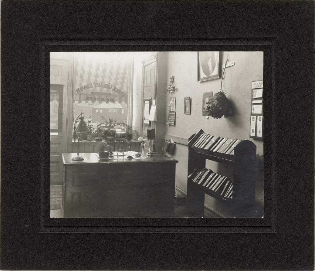Favorite this☆ Interior, Scripps Branch Library Description: Interior view of the Scripps Branch Library, Detroit Public Library, showing desk and bookshelf. Window in background. Label on back: "Branch no. 5, old Scripps." Details Resource ID: bh020881 Subject: Detroit Public Library. Scripps Branch Library buildings--Michigan--Detroit Branch libraries--Michigan--Detroit Public libraries--Michigan--Detroit Desks--Michigan--Detroit Photographic prints Date Issued: Unknown year Format: 1 photographic print mounted on mat board ; image 3.5 x 4.75 in. Member of: Burton Historical Collection Filing Location: D/Libraries-DPL-Branches-Scripps Rights: Physical rights are retained by DPL. Copyright is retained in accordance with U.S. copyright laws.