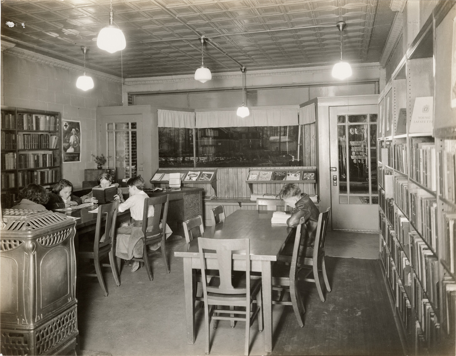 Children reading at tables, Allen Park Center, Wayne County Service, Detroit Public Library