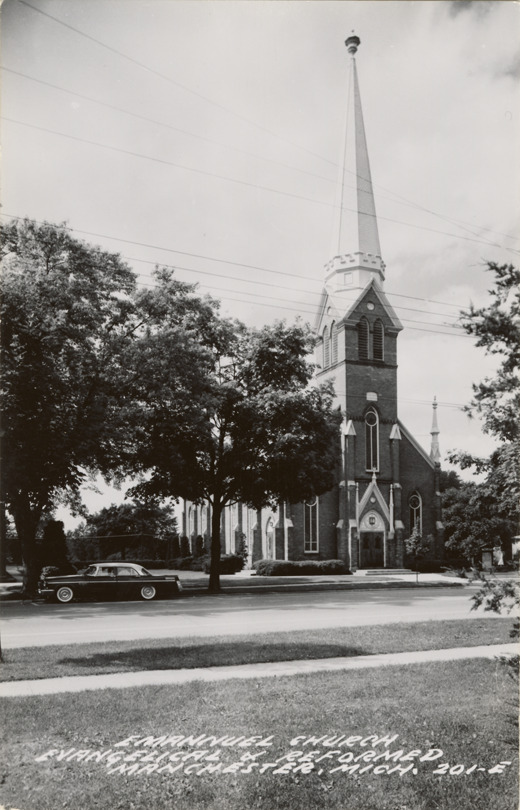 View of the Emmanuel Church in Manchester, Michigan. Printed on front: "Emmanuel Church, Evangelical Reformed, Manchester, Mich."