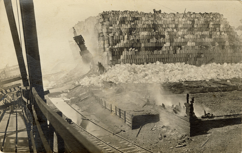 Favorite this☆ Ice house, Jackson, Michigan Description: View of a stack of ice blocks at ice house in Jackson, Michigan, possibly owned by the Consumer Ice Company. Handwritten on back: "Ice house near Jackson, Mich. It burned down about 1920." Details Resource ID: bh020927 Subject: Icehouses--Michigan--Jackson Ice--Michigan--Jackson Photographic prints Postcards Date Issued: Unknown year Format: 1 postcard ; 3.5 x 5.5 in. Member of: Burton Historical Collection Filing Location: M/Localities-Jackson Rights: Physical rights are retained by DPL. Copyright is retained in accordance with U.S. copyright laws.