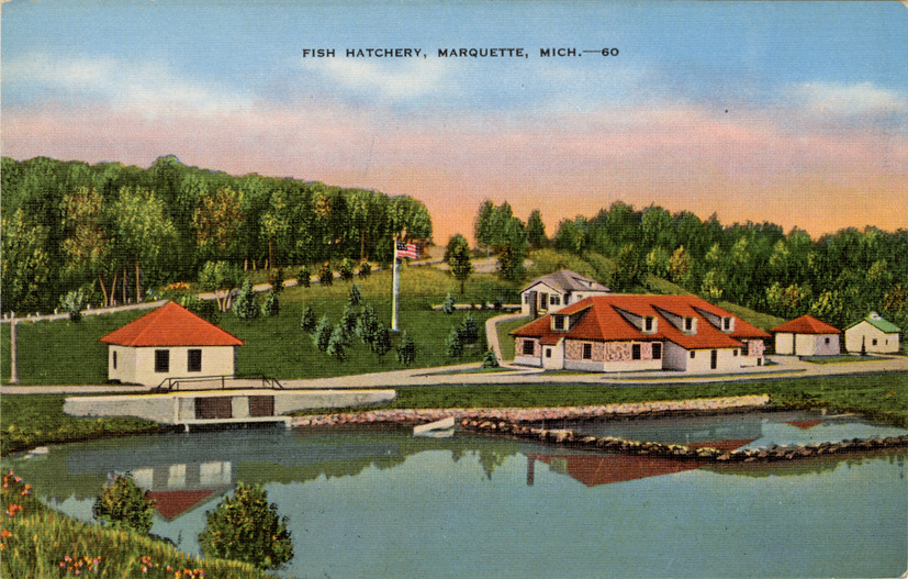 Favorite this☆ Fish hatchery, Marquette, Michigan Description: View of fish hatchery in Marquette, Michigan. Printed on front: "Fish hatchery, Marquette, Mich." Printed on back: "Made in U.S.A. by E.C. Kropp Co., Milwaukee, Wis. Photo by Mich. Dept. of Conservation." Details Resource ID: bh020959 Creator: Michigan. Department of Conservation Subject: Fish hatcheries--Michigan--Marquette Postcards Publisher: E.C. Kropp Co. Date Issued: Unknown year Format: 1 postcard : col. ; 3.5 x 5.5 in. Member of: Burton Historical Collection Filing Location: M/Localities-Marquette Rights: Physical rights are retained by DPL. Copyright is retained in accordance with U.S. copyright laws.