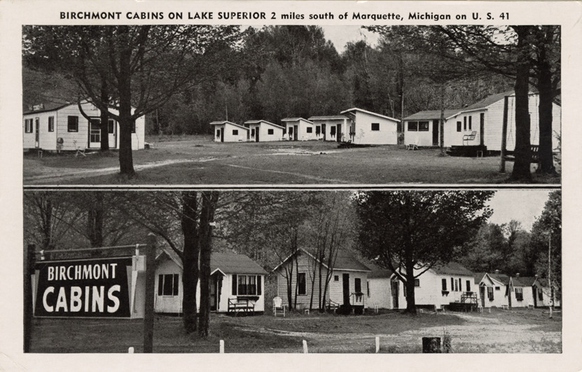 Favorite this☆ Birchmont Cabins, Marquette, Michigan Description: Two views of Birchmont Cabins at Marquette, Michigan. Printed on front: "Birchmont Cabins on Lake Superior, 2 miles south of Marquette, Michigan on U.S. 41." Printed on back: "Made in U.S.A. by E.C. Kropp Co., Milwaukee, Wis. GJA." Details Resource ID: bh020976 Subject: Motels--Michigan--Marquette Tourist camps, hostels, etc.--Michigan--Marquette Postcards Publisher: E.C. Kropp Co. Date Issued: Unknown year Format: 1 postcard ; 3.5 x 5.5 in. Member of: Burton Historical Collection Filing Location: M/Localities-Marquette Rights: Physical rights are retained by DPL. Copyright is retained in accordance with U.S. copyright laws.