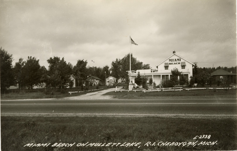 Favorite this☆ Miami Beach cabins at Mullett Lake Description: View of the Miami Beach tourist cabins at Mullett Lake, in Cheboygan County, Michigan. Printed on front: "Miami Beach on Mullett Lake, R.I. Cheboygan, Mich." Details Resource ID: bh021208 Subject: Motels--Michigan--Cheboygan County Cabins--Michigan--Cheboygan County Photographic prints Postcards Date Issued: Unknown year Format: 1 postcard ; 3.5 x 5.5 in. Member of: Burton Historical Collection Filing Location: M/Localities-Mullett Lake Rights: Physical rights are retained by DPL. Copyright is retained in accordance with U.S. copyright laws.