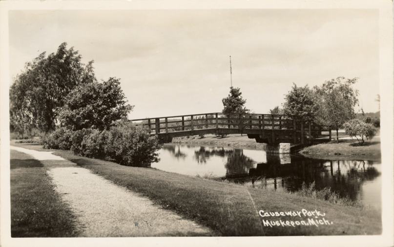 Favorite this☆ Bridge at Causeway Park, Muskegon, Michigan Description: View of a bridge over canal in Causeway Park at Muskegon, Michigan. Printed on front: "Causeway Park, Muskegon, Mich." Details Resource ID: bh021230 Subject: Parks--Michigan--Muskegon Bridges--Michigan--Muskegon Canals--Michigan--Muskegon Photographic prints Postcards Date Issued: Unknown year Format: 1 postcard ; 3.5 x 5.5 in. Member of: Burton Historical Collection Filing Location: M/Localities-Muskegon Rights: Physical rights are retained by DPL. Copyright is retained in accordance with U.S. copyright laws.