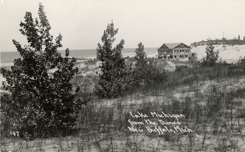 Favorite this☆ Dunes along Lake Michigan, New Buffalo, Michigan Description: View of sand dunes along Lake Michigan in New Buffalo, Michigan. Hotel or resort building in background. Printed on front: "Lake Michigan from the dunes, New Buffalo, Mich." Printed on back: "Schmidt, the druggist. New Buffalo, Mich." Details Resource ID: bh021292 Subject: Sand dunes--Michigan--New Buffalo Michigan, Lake Hotels--Michigan--New Buffalo Photographic prints Postcards Publisher: Schmidt, the druggist Date Issued: Unknown year Format: 1 postcard ; 3.5 x 5.5 in. Member of: Burton Historical Collection Filing Location: M/Localities-New Buffalo Rights: Physical rights are retained by DPL. Copyright is retained in accordance with U.S. copyright laws.