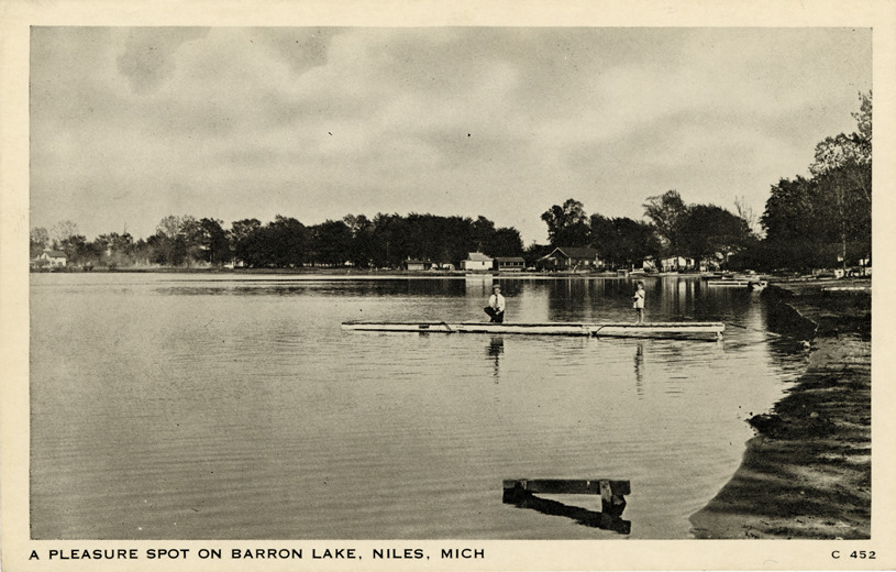 Favorite this☆ Barron Lake, Niles, Michigan Description: View of Barron Lake in Niles, Michigan. Printed on front: "A pleasure spot on Barron Lake, Niles, Mich." Printed on back: "Mfd. by Wayne Paper Box & Prtg. Corp., Fort Wayne, Ind." Details Resource ID: bh021327 Subject: Lakes--Michigan--Niles Postcards Date Issued: Unknown year Format: 1 postcard ; 3.5 x 5.5 in. Member of: Burton Historical Collection Filing Location: M/Localities-Niles Rights: Physical rights are retained by DPL. Copyright is retained in accordance with U.S. copyright laws.