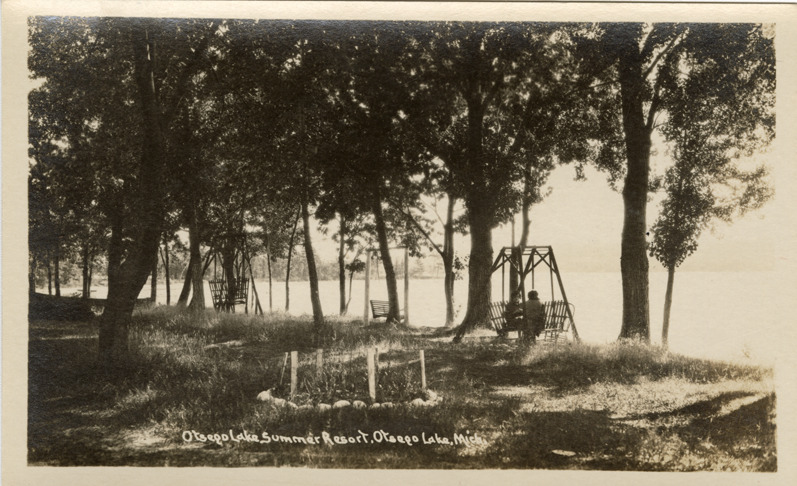 Favorite this☆ Swings near shoreline, Kennedy's Summer Resort, Otsego Lake, Michigan Description: View of swings near shoreline at Kennedy's Summer Resort at Otsego Lake, Michigan. Printed on front: "Otsego Lake Summer Resort, Otsego Lake, Mich." Details Resource ID: bh021349 Subject: Swings--Michigan--Otsego Lake Resorts--Michigan--Otsego Lake Lakes--Michigan--Otsego Lake Photographic prints Postcards Date Issued: Unknown year Format: 1 postcard ; 3.5 x 5.5 in. Member of: Burton Historical Collection Filing Location: M/Localities-Otsego Lake Rights: Physical rights are retained by DPL. Copyright is retained in accordance with U.S. copyright laws.