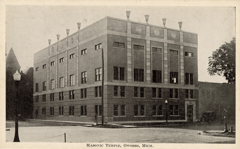 Favorite this☆ Masonic Temple, Owosso, Michigan Description: View of the Masonic Temple in Owosso, Michigan. Printed on front: "Masonic Temple, Owosso, Mich." Printed on back: "Paulding Post Card Co., Paulding, Ohio." Details Resource ID: bh021376 Subject: Masonic Temple (Owosso, Mich.) Postcards Publisher: Paulding Post Card Co. Date Issued: Unknown year Format: 1 postcard ; 3.5 x 5.5 in. Member of: Burton Historical Collection Filing Location: M/Localities-Owosso Rights: Physical rights are retained by DPL. Copyright is retained in accordance with U.S. copyright laws.
