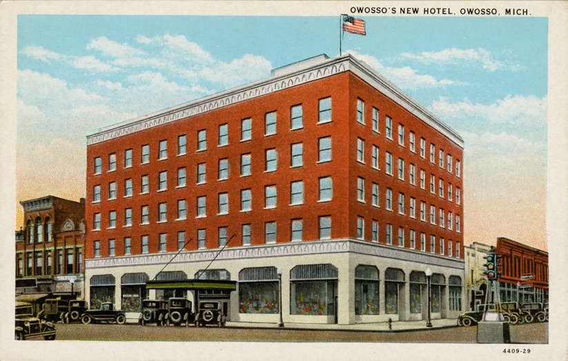 Favorite this☆ Owosso Hotel, Owosso, Michigan Description: View of the Owosso Hotel in Owosso, Michigan. Printed on front: "Owosso's new hotel, Owosso, Mich." Printed on back: "Published by Crane News Agency, Owosso, Mich. C.T. American Art Colored. CT Co., Chicago." Details Resource ID: bh021378 Subject: Hotels--Michigan--Owosso Postcards Publisher: Crane News Agency Curt Teich & Co. Date Issued: Unknown year Format: 1 postcard : col. ; 3.5 x 5.5 in. Member of: Burton Historical Collection Filing Location: M/Localities-Owosso Rights: Physical rights are retained by DPL. Copyright is retained in accordance with U.S. copyright laws.