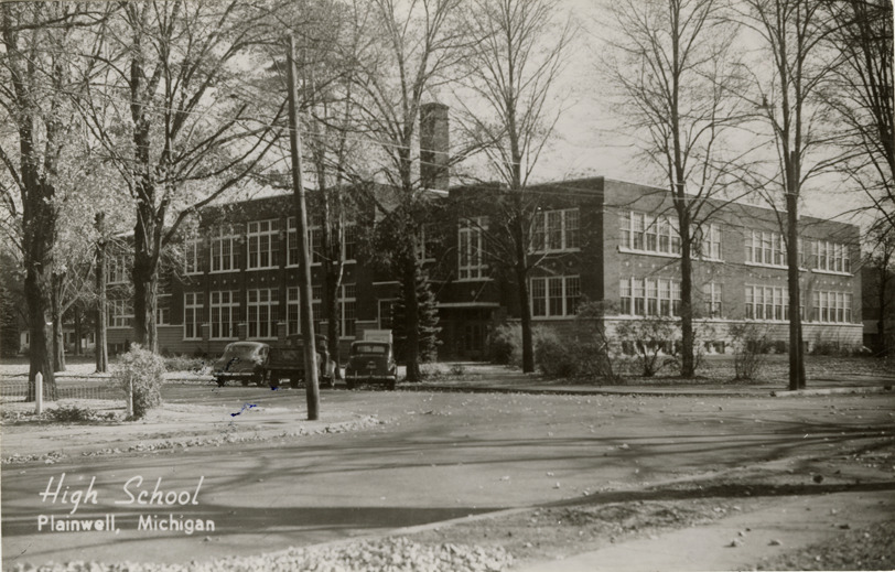 Favorite this☆ High School, Plainwell, Michigan Description: View of the High School in Plainwell, Michigan. Printed on front: "High School, Plainwell, Michigan." Printed on back: "Groganized for Michigan Card Co., Grand Rapids, Michigan." Details Resource ID: bh021445 Subject: High school buildings--Michigan--Plainwell Photographic prints Postcards Publisher: Michigan Card Co. Date Issued: Unknown year Format: 1 postcard ; 3.5 x 5.5 in. Member of: Burton Historical Collection Filing Location: M/Localities-Plainwell Rights: Physical rights are retained by DPL. Copyright is retained in accordance with U.S. copyright laws.