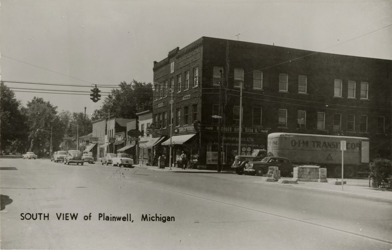 Favorite this☆ Commercial buildings, Plainwell, Michigan Description: View of commercial buildings and cars on an unidentified street in Plainwell, Michigan. Truck on right. Printed on front: "South view of Plainwell, Michigan." Printed on back: "Groganized for Michigan Card Co., Grand Rapids, Michigan." Details Resource ID: bh021446 Subject: Commercial buildings--Michigan--Plainwell Automobiles--Michigan--Plainwell Trucks--Michigan--Plainwell Photographic prints Postcards Publisher: Michigan Card Co. Date Issued: Unknown year Format: 1 postcard ; 3.5 x 5.5 in. Member of: Burton Historical Collection Filing Location: M/Localities-Plainwell Rights: Physical rights are retained by DPL. Copyright is retained in accordance with U.S. copyright laws.