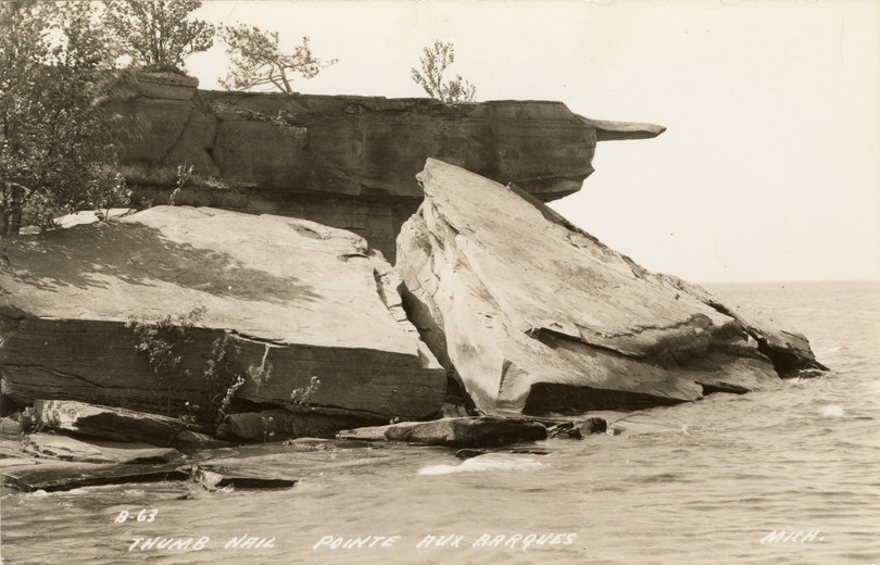 Favorite this☆ Thumb Nail, Pointe aux Barques, Michigan Description: View of Thumb Nail at Pointe aux Barques, Michigan. Printed on front: "Thumb Nail, Pointe aux Barques, Mich." Details Resource ID: bh021468 Subject: Rock formations--Michigan--Pointe aux Barques Photographic prints Postcards Date Issued: Unknown year Format: 1 postcard ; 3.5 x 5.5 in. Member of: Burton Historical Collection Filing Location: M/Localities-Pointe aux Barques Rights: Physical rights are retained by DPL. Copyright is retained in accordance with U.S. copyright laws.