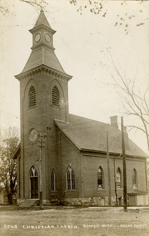 Favorite this☆ Christian Church, Romeo, Michigan Description: View of the Christian Church in Romeo, Michigan. Printed on front: "Christian Church, Romeo, Mich. Pesha, photo." Printed on back: "The Pesha Art Co., Marine City, Mich." Details Resource ID: bh021649 Creator: Pesha, Louis James Subject: Church buildings--Michigan--Romeo Photographers--Michigan--Marine City Photographic prints Postcards Date Issued: Unknown year Format: 1 postcard ; 5.5 x 3.5 in. Member of: Burton Historical Collection Filing Location: M/Localities-Romeo Rights: Physical rights are retained by DPL. Copyright is retained in accordance with U.S. copyright laws.