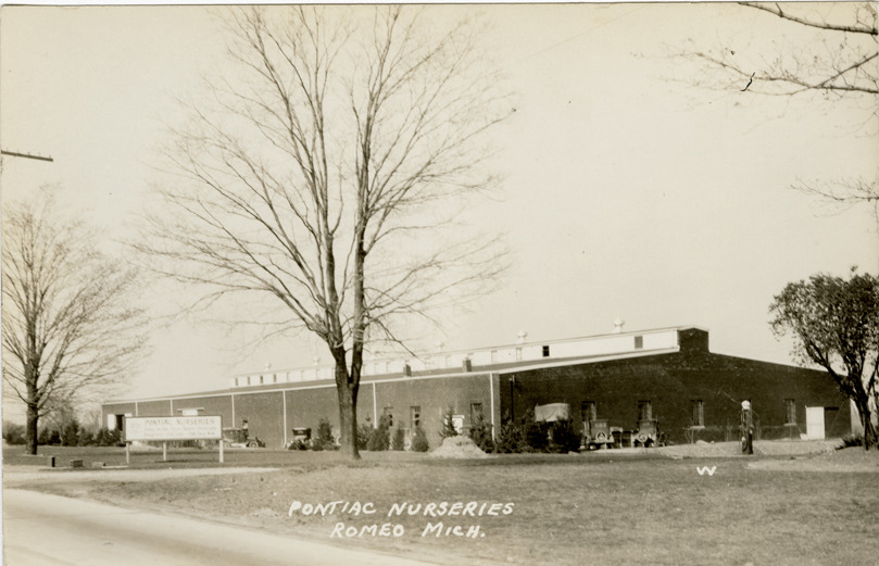 Favorite this☆ Pontiac Nurseries, Romeo, Michigan Description: View of the Pontiac Nurseries in Romeo, Michigan. Printed on front: "Pontiac Nurseries, Romeo, Mich." Details Resource ID: bh021652 Subject: Nurseries (Horticulture)--Michigan--Romeo Photographic prints Postcards Date Issued: Unknown year Format: 1 postcard ; 3.5 x 5.5 in. Member of: Burton Historical Collection Filing Location: M/Localities-Romeo Rights: Physical rights are retained by DPL. Copyright is retained in accordance with U.S. copyright laws.