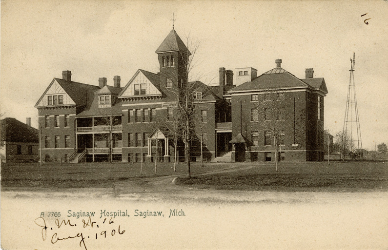 Favorite this☆ Saginaw General Hospital, Saginaw, Michigan Description: View of Saginaw General Hospital in Saginaw, Michigan. Printed on front: "A 7766. Saginaw Hospital, Saginaw, Mich." Handwritten on front: "J.M.W. 16. Aug. 1906." Printed on back: "The Rotograph Co., N.Y., City, (Germany)." Details Resource ID: bh021693 Subject: Hospital buildings--Michigan--Saginaw Postcards Publisher: Rotograph Co. Date Issued: 1906 (year approximate) Format: 1 postcard ; 3.5 x 5.5 in. Member of: Burton Historical Collection Filing Location: M/Localities-Saginaw Rights: Physical rights are retained by DPL. Copyright is retained in accordance with U.S. copyright laws.