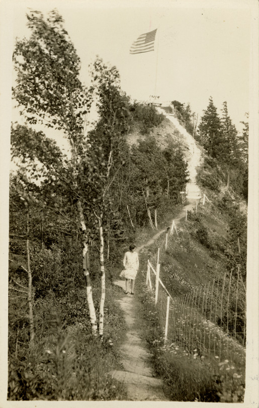 Favorite this☆ Rabbit's Back Peak, St. Ignace, Michigan Description: View of Rabbit's Back Peak with American flag at St. Ignace, Michigan. Woman on trail in foreground. Details Resource ID: bh021798 Subject: Rock formations--Michigan--Saint Ignace Flags--United States Photographic prints Postcards Date Issued: Unknown year Format: 1 postcard ; 5.5 x 3.5 in. Member of: Burton Historical Collection Filing Location: M/Localities-St. Ignace Rights: Physical rights are retained by DPL. Copyright is retained in accordance with U.S. copyright laws.