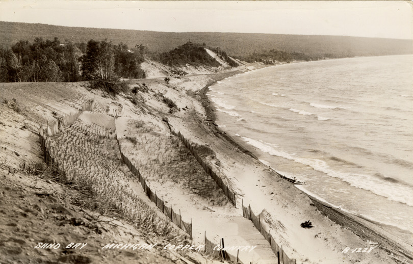 Favorite this☆ Great Sand Bay, Keweenaw County, Michigan Description: View of the Great Sand Bay in Keweenaw County, Michigan. Printed on front: "Sand Bay, Michigan Copper Country." Printed on back: "All rights reserved. The L.L. Cook Co., Milwaukee." Handwritten on back: "Keweenaw Co." Details Resource ID: bh021857 Subject: Beaches--Michigan--Keweenaw County Bays--Michigan--Keweenaw County Photographic prints Postcards Publisher: L.L. Cook Co. Date Issued: Unknown year Format: 1 postcard ; 3.5 x 5.5 in. Member of: Burton Historical Collection Filing Location: M/Localities-Sand Bay Rights: Physical rights are retained by DPL. Copyright is retained in accordance with U.S. copyright laws.