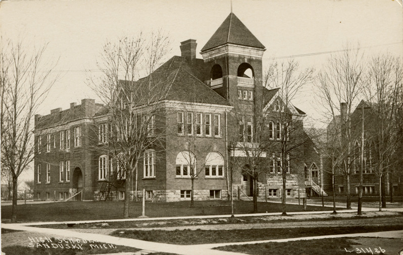 Favorite this☆ High School, Sandusky, Michigan Description: View of the High School in Sandusky, Michigan. Printed on front: "High School, Sandusky, Mich." Details Resource ID: bh021864 Subject: High school buildings--Michigan--Sandusky Photographic prints Postcards Date Issued: Unknown year Format: 1 postcard ; 3.5 x 5.5 in. Member of: Burton Historical Collection Filing Location: M/Localities-Sandusky Rights: Physical rights are retained by DPL. Copyright is retained in accordance with U.S. copyright laws.