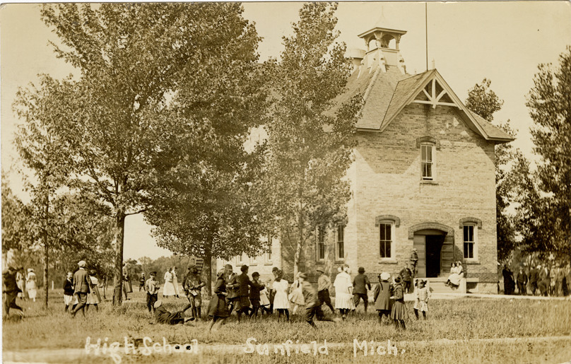 Students in front of High School, Sunfield, Michigan