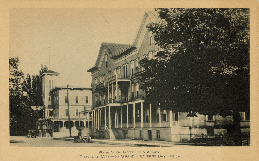 Favorite this☆ Park View Hotel and Annex, Traverse City, Michigan Description: View of the Park View Hotel and Annex at Traverse City, Michigan. Printed on front: "Park View Hotel and Annex, on Grand Traverse Bay, Mich." Details Resource ID: bh022127 Subject: Hotels--Michigan--Traverse City Postcards Date Issued: Unknown year Format: 1 postcard ; 3.5 x 5.5 in. Member of: Burton Historical Collection Filing Location: M/Localities-Traverse City Rights: Physical rights are retained by DPL. Copyright is retained in accordance with U.S. copyright laws.