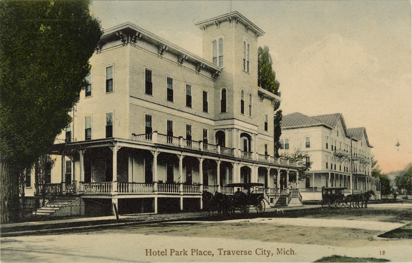 Favorite this☆ Park Place Hotel, Traverse City, Michigan Description: View of the Park Place Hotel in Traverse City, Michigan. Printed on front: "Hotel Park Place, Traverse City, Mich." Printed on back: "18. Pub. by Orson W. Peck. Made in Germany." Details Resource ID: bh022133 Subject: Hotels--Michigan--Traverse City Postcards Publisher: Orson W. Peck Date Issued: Unknown year Format: 1 postcard : col. ; 3.5 x 5.5 in. Member of: Burton Historical Collection Filing Location: M/Localities-Traverse City Rights: Physical rights are retained by DPL. Copyright is retained in accordance with U.S. copyright laws.