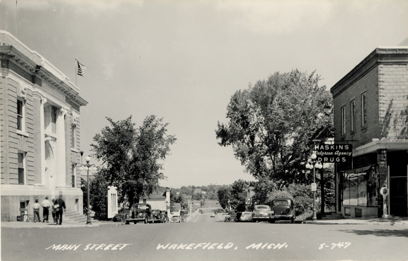 Favorite this☆ Main Street, Wakefield, Michigan Description: View of the City Hall and Haskins Drugs on Main St. in Wakefield, Michigan. Printed on front: "Main Street, Wakefield, Mich." Printed on back: "All rights reserved. The L.L. Cook Co., Milwaukee." Details Resource ID: bh022151 Subject: Streets--Michigan--Wakefield City halls--Michigan--Wakefield Drugstores--Michigan--Wakefield Photographic prints Postcards Publisher: L.L. Cook Co. Date Issued: Unknown year Format: 1 postcard ; 3.5 x 5.5 in. Member of: Burton Historical Collection Filing Location: M/Localities-Wakefield Rights: Physical rights are retained by DPL. Copyright is retained in accordance with U.S. copyright laws.