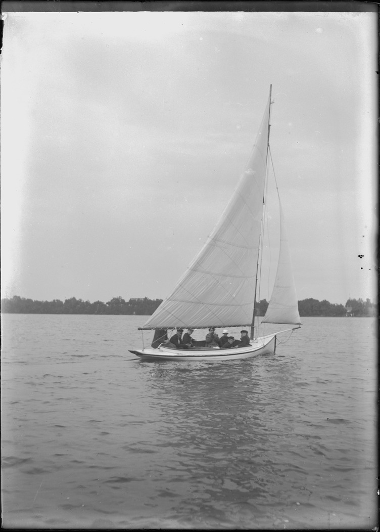 Favorite this☆ Yacht, Pine Lake Description: View of boaters on a yacht on Pine Lake. Handwritten on sleeve: "Frank's yacht, Pine Lake. July 23, 19--." Details Resource ID: bh022188 Subject: Yachts--Michigan Lakes--Michigan Glass negatives Date Issued: Unknown year Format: 1 negative : glass ; 7 x 5 in. Member of: Burton Historical Collection Filing Location: Heath Collection Negative Number: 580 Rights: Physical rights are retained by DPL. Copyright is retained in accordance with U.S. copyright laws.