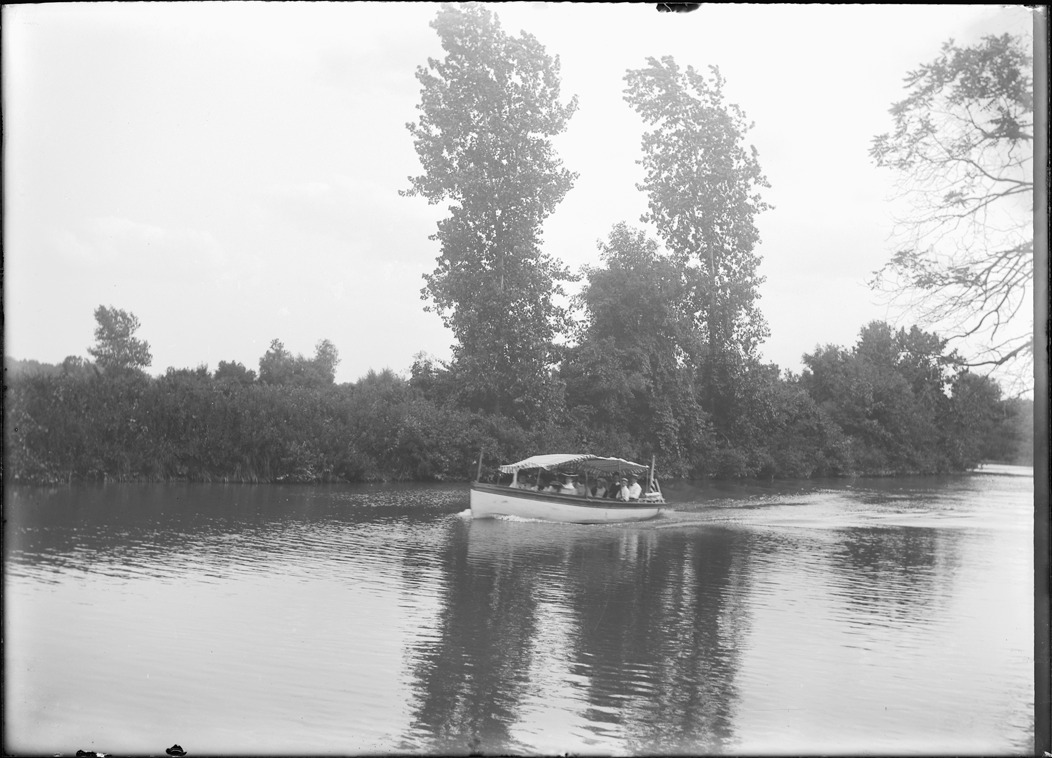 Favorite this☆ Pleasure boat on river Description: View of passengers on an excursion boat on the river. Handwritten on sleeve: "Dr. Clippert's launch going up. Aug. 7, 1904." Details Resource ID: bh022313 Subject: Excursion boats--Michigan Rivers--Michigan Glass negatives Date Issued: 1904-08-07 Format: 1 negative : glass ; 5 x 7 in. Member of: Burton Historical Collection Filing Location: Heath Collection Negative Number: 591 Rights: Physical rights are retained by DPL. Copyright is retained in accordance with U.S. copyright laws.