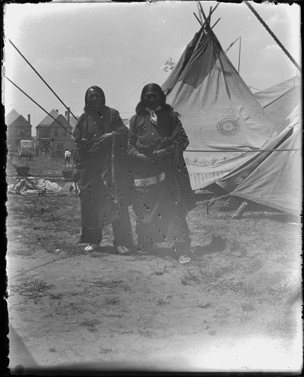Favorite this☆ Two American Indian men at Buffalo Bill's Wild West Show Description: View of two Native American men from Buffalo Bill's Wild West Show. Tepees in background. Handwritten on sleeve: "Two Indians. Buffalo Bill's Show." Details Resource ID: bh022409 Creator: Mears Subject: Indians of North America Buffalo Bill's Wild West Show Tipis Glass negatives Date Issued: Unknown year Format: 1 negative : glass ; 5 x 4 in. Member of: Burton Historical Collection Filing Location: Heath Collection Negative Number: 25 Rights: Physical rights are retained by DPL. Copyright is retained in accordance with U.S. copyright laws.