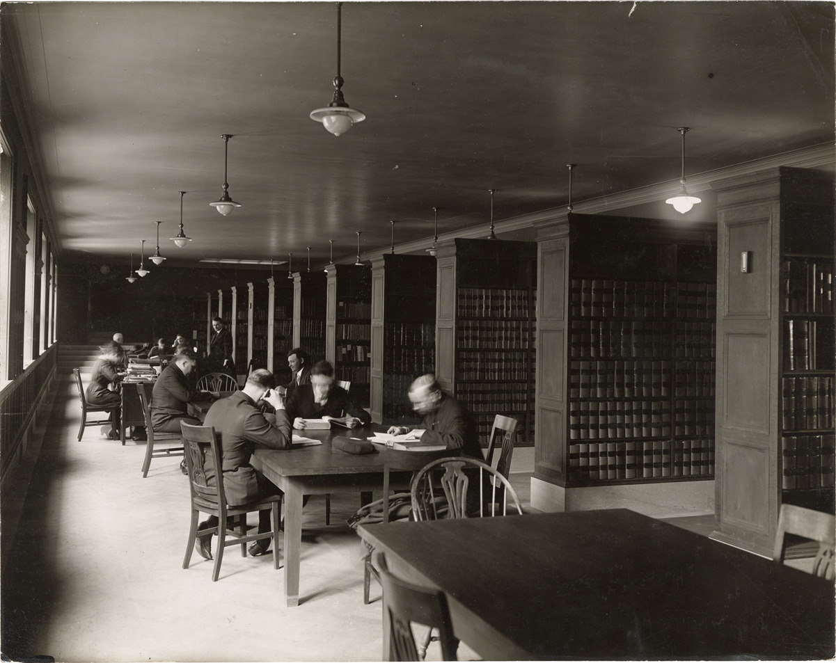 Men and women studying at tables, Social Sciences reading room, Main Library