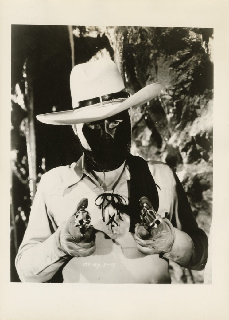 Favorite this☆ Lone Ranger Description: View of the Lone Ranger, wearing a mask and posing with two pistols. Printed on front: "794-Ep. 5-15." Label on back: "6. The Lone Ranger at bay." Details Resource ID: bh022435 Subject: Lone Ranger (Fictitious character) Actors Pistols Photographic prints Format: 1 photographic print ; 7 x 5 in. Member of: Burton Historical Collection Filing Location: MS/Trendle, George, 70:5 Rights: Physical rights are retained by DPL. Copyright is retained in accordance with U.S. copyright laws.